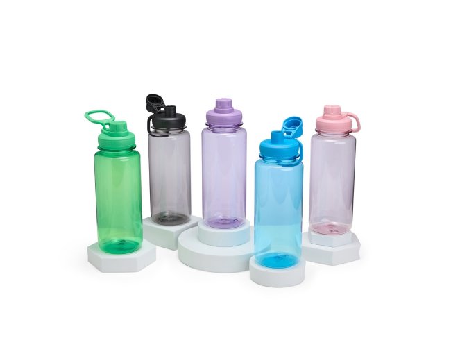 Feito em plástico resistente, nosso squeeze com capacidade de 1 litro vem com uma tampa rosqueável e alça integrada, facilitando o transporte. A tampa protetora do bocal, também rosqueável, evita o contato com sujeiras e torna o squeeze mais higiênico.